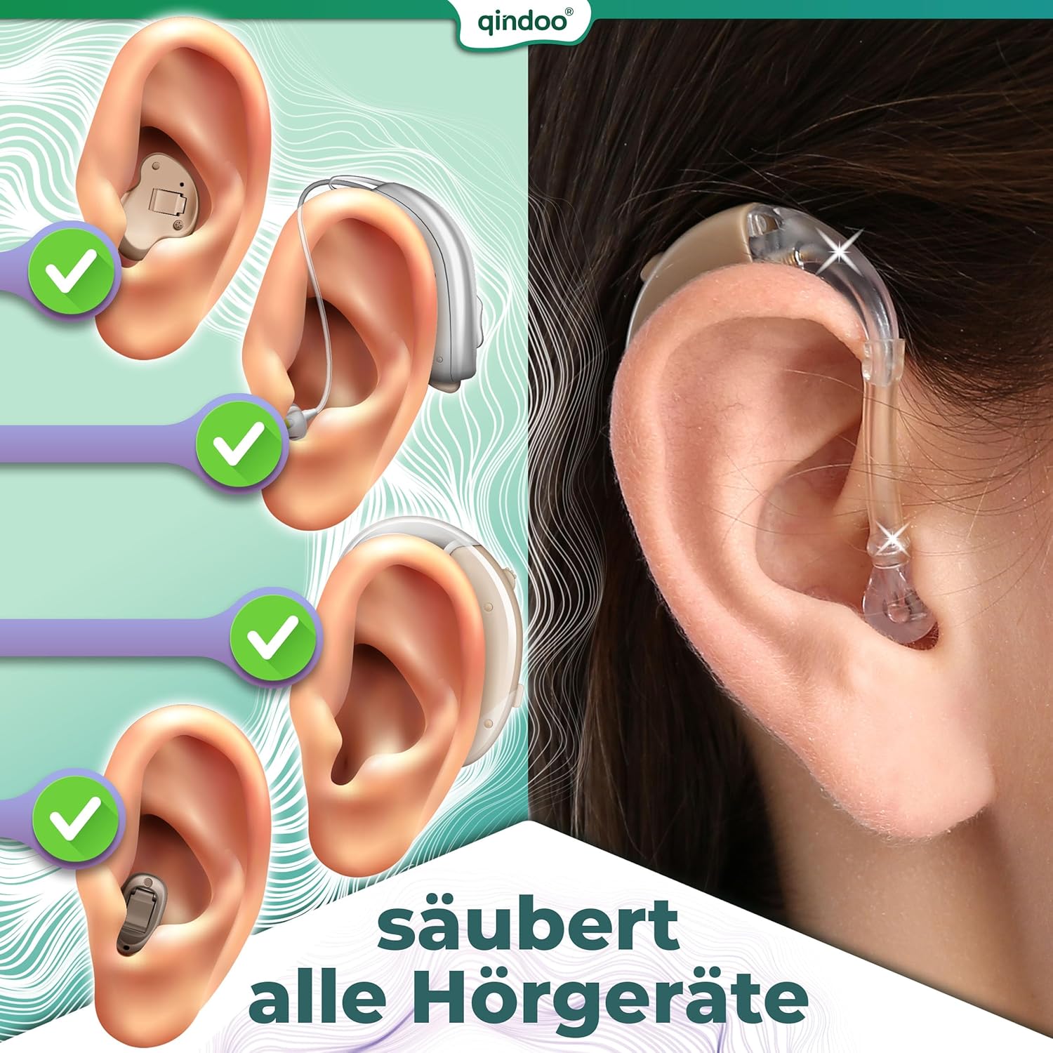 - Effektive Reinigung: Entfernt hygienisch und effizient Ohrenschmalz/ Cerumen, Fette, Öle, Make-Up, Hautschuppen, Staub und andere organische Ablagerungen von Ihrem Hörgerät, ohne es zu beschädigen.
