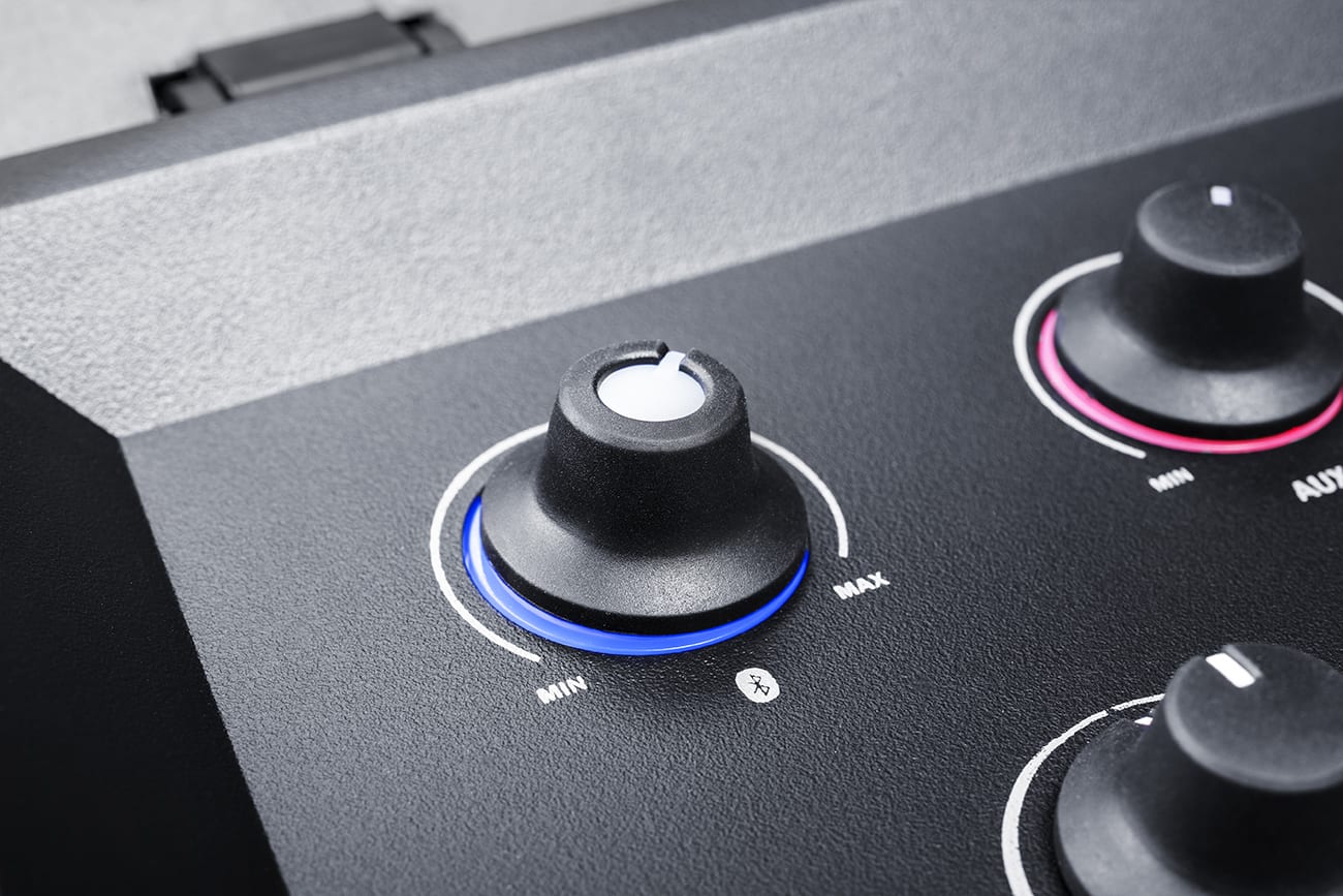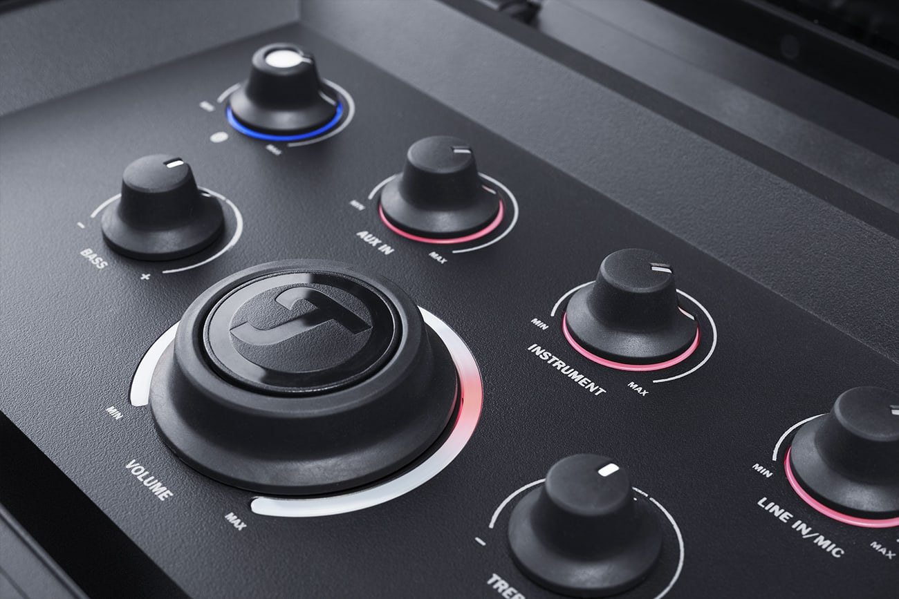 • Integrierter, beleuchteter 4-Kanal-Mixer, Klangregler, inklusive Fernbedienung